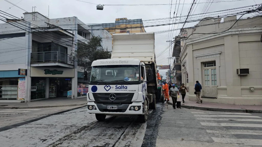 La Municipalidad de Salta avanza con el Plan de Recuperación de Calles y ejecuta trabajos de repavimentación en la calle Florida, en la ciudad de Salta.