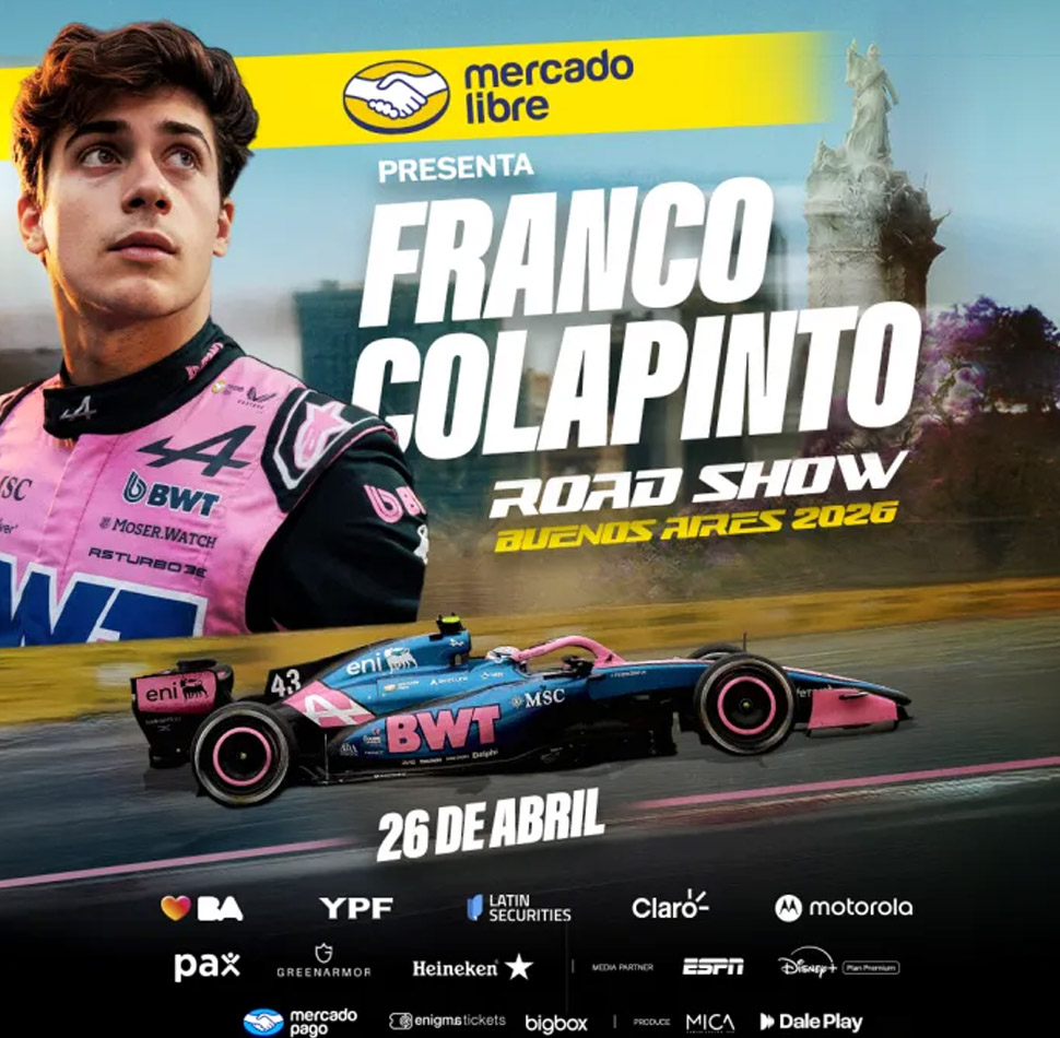 El piloto argentino Franco Colapinto será el gran protagonista del “Franco Colapinto Road Show Buenos Aires 2026”, un evento que promete acercar la emoción de la Fórmula 1 a las calles de la capital.