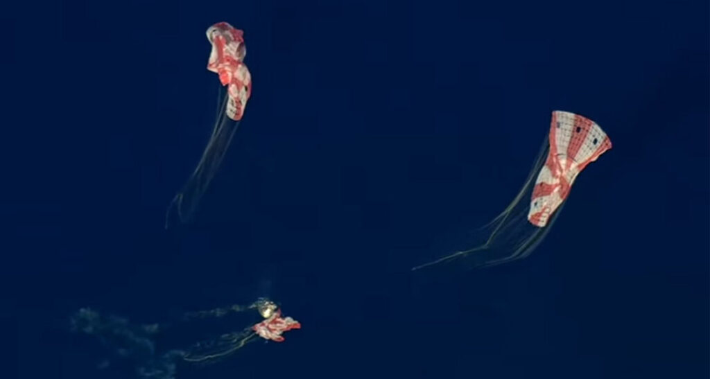 Una hora y 19 minutos después del descenso, la tripulación fue retirada de la nave y trasladada en helicóptero al buque USS John P. Murtha, donde comenzaron las primeras evaluaciones médicas de rutina.