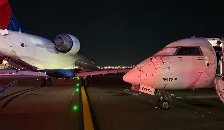 Un incidente inusual se registró en la noche del miércoles en el aeropuerto LaGuardia de Nueva York, cuando dos aviones regionales de Delta Air Lines colisionaron a baja velocidad en una de las pistas de rodaje. El hecho dejó como saldo un auxiliar de vuelo herido, aunque ninguno de los pasajeros resultó afectado.