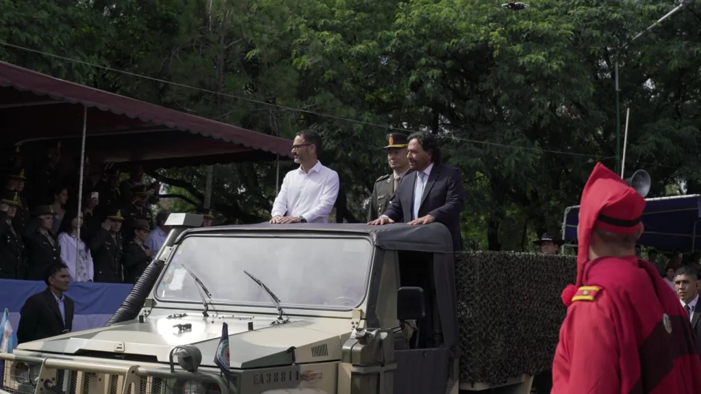 Posteriormente, las autoridades se trasladaron al Monumento 20 de Febrero, donde se desarrollaron los actos centrales. Allí se realizó la revista de tropas, la invocación religiosa y se pronunciaron palabras alusivas por parte de autoridades provinciales y militares.