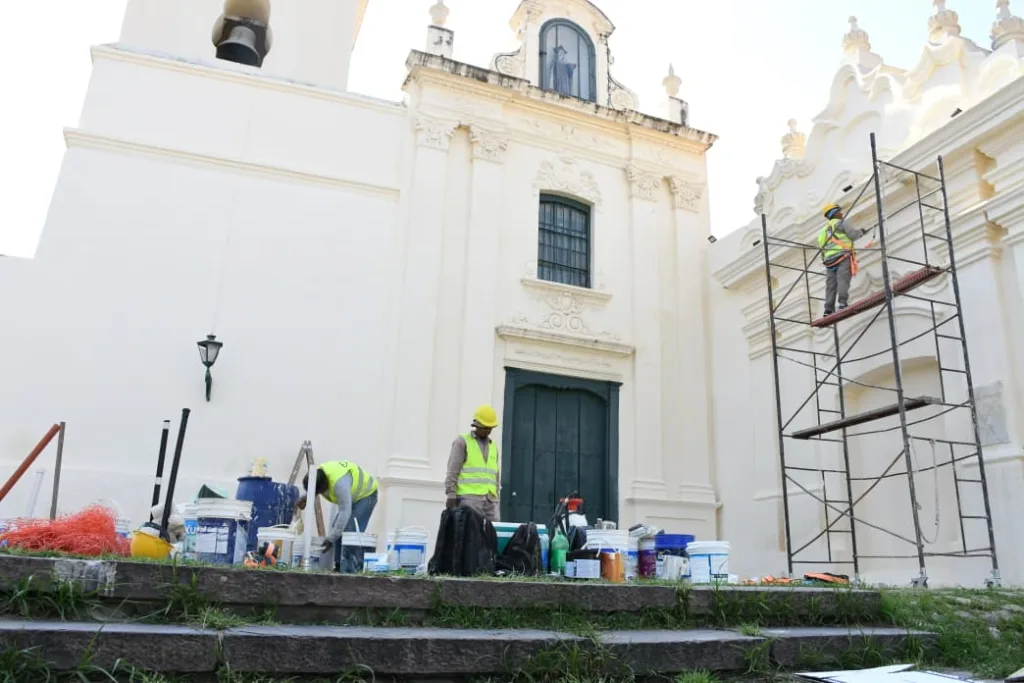 En paralelo, comenzaron tareas similares en la fachada del Hogar San Vicente de Paul, ubicado frente al convento y parte del Paseo de la Fe que conecta las calles Caseros y Juramento.