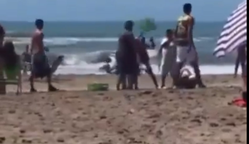 Las imágenes registradas por los propios veraneantes muestran canastos de mimbre volando por el aire y enfrentamientos cuerpo a cuerpo, mientras familias y turistas, muchos de ellos con niños pequeños, se veían obligados a abandonar la arena a toda prisa para ponerse a resguardo.